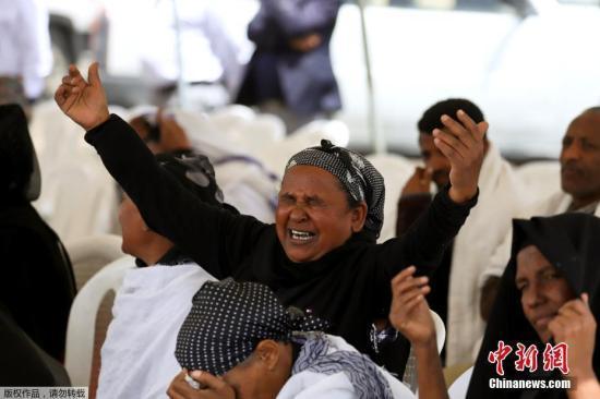 当地时间3月14日,埃塞俄比亚比绍夫图,失去亲人的埃塞俄比亚人家属在坠机现场痛哭哀悼。3月10日,埃塞俄比亚航空公司一架从亚的斯亚贝巴飞往肯尼亚内罗毕的波音737 MAX 8客机在起飞后不久坠毁,机上149名乘客和8名机组人员无一生还。