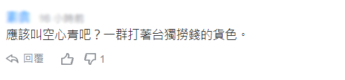 对于“喜乐岛”切割民进党造出所谓的“台湾青”,有台湾网友讽刺,应该叫“空心青”吧?一群打着“台独”捞钱的货色↓