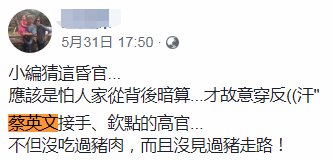 也有人怒骂:“蔡英文接手、钦点的高官...不但没吃过猪肉,而且没见过猪走路!”