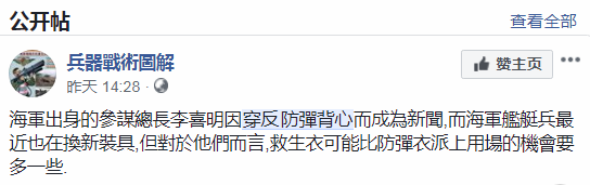 直至6月5日,“汉光演习”已结束数天,岛内还有人拿此事调侃,并联系台海军更换装备一事称,李喜明是海军出身,而台海军“救生衣可能比防弹衣派上用场的机会要多一些。”