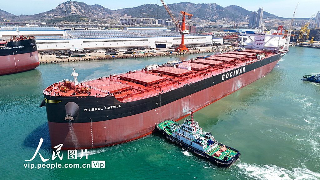 山东青岛:21万吨绿色燃料船舶启程海试