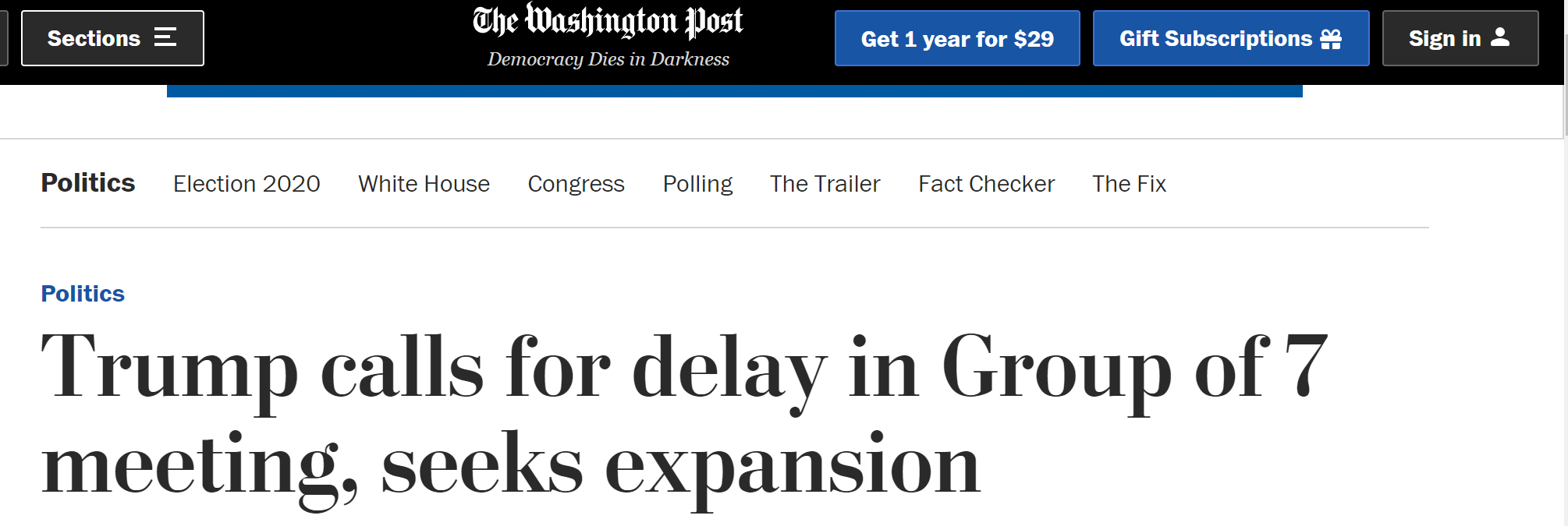 特朗普在采访中提议把七国集团峰会(G7)的举办推迟到秋季,并呼吁扩大该集团的成员规模。他表示,现存的集团已经“过时”, 不能恰当地代表当前世界正在发生的事情。