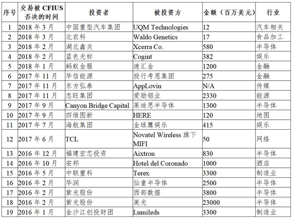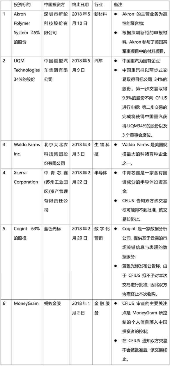 此外,因遭遇CFIUS审查而投资失利的中资企业既包括中国工商银行、中国化工、西色国际投资有限公司、唐山曹妃甸发展投资集团有限公司等国有或国有控股企业,也包括华为、 万向集团及福建宏芯基金等民营投资实体。