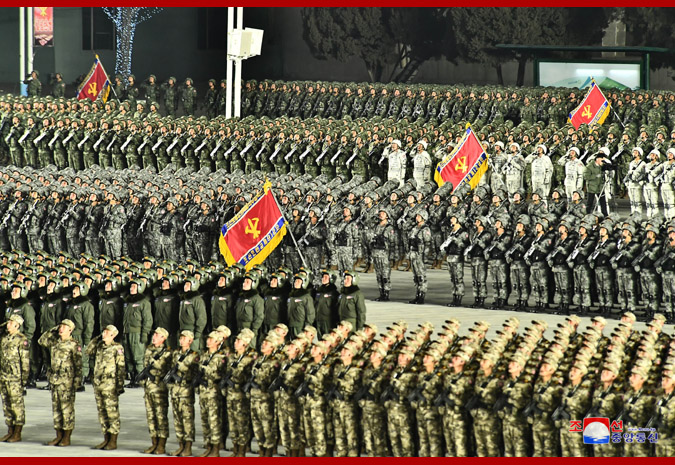 据报道,朝鲜民主主义人民共和国国防相金正官发表了讲话。总参谋长、朝鲜人民军元帅朴正天向党中央军事委员会副委员长、朝鲜人民军元帅李炳哲报告阅兵部队整齐列队,纪念党的第八次代表大会阅兵式受阅部队准备完毕。李炳哲检阅阅兵方阵。