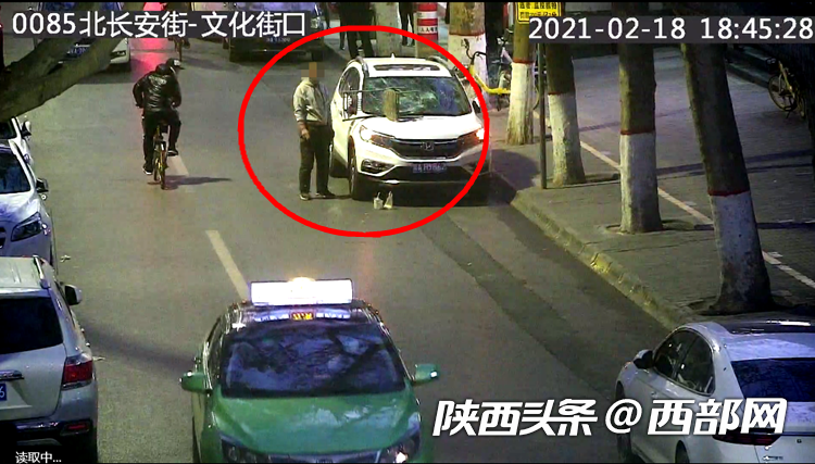 2月18日傍晚,西安市长安区北长安街与文化街十字向西50米处一男子正在砸车,造成道路拥堵。