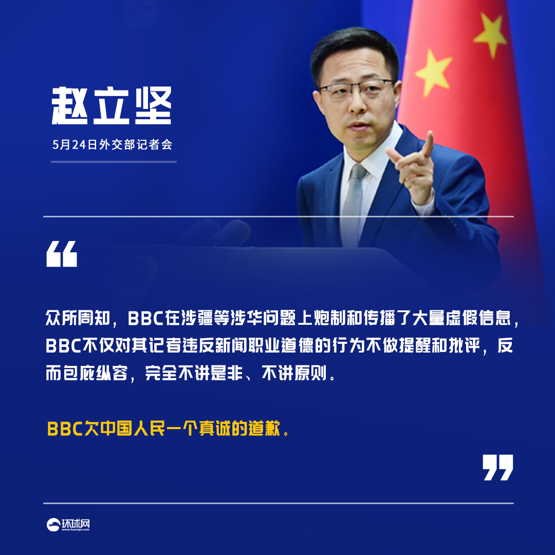 “BBC欠中国人民一个真诚的道歉。”赵立坚说,“我们注意到英国外交发展部每年为BBC国际频道提供运作资金,今年更是额外拨款800万英镑,专门用于所谓‘应对虚假信息’。我们希望这笔钱能够用在刀刃上,专门清除BBC制造的谎言和虚假信息。”