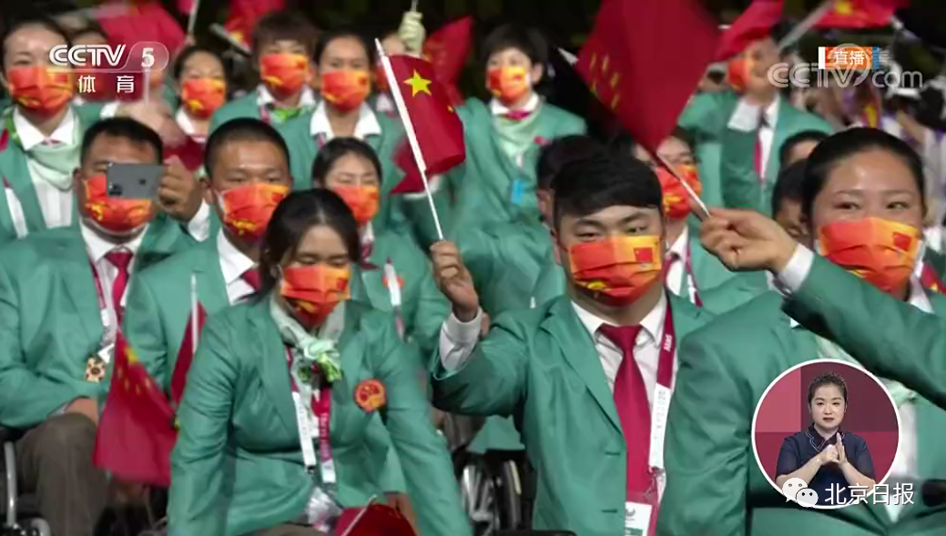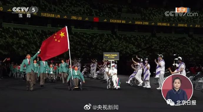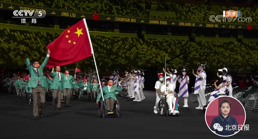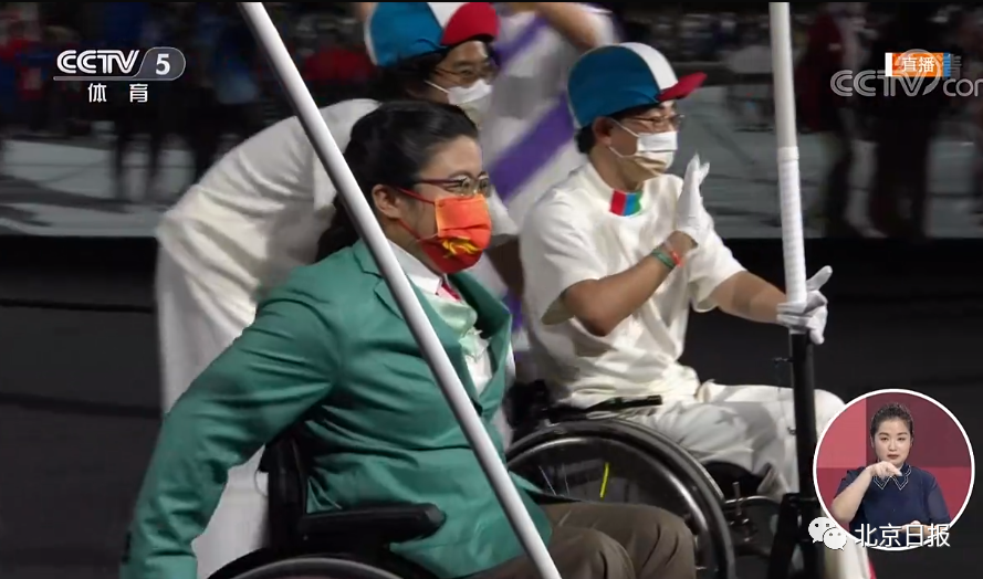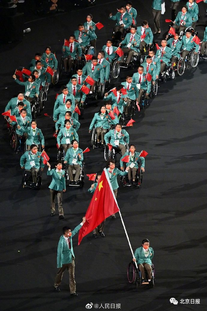 女子轮椅射箭运动员周佳敏、男子肢残田径运动员王浩担任中国体育代表团旗手。