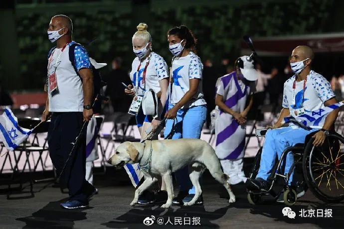 此外,残奥会开幕式上,还出现了特别的成员——导盲犬。