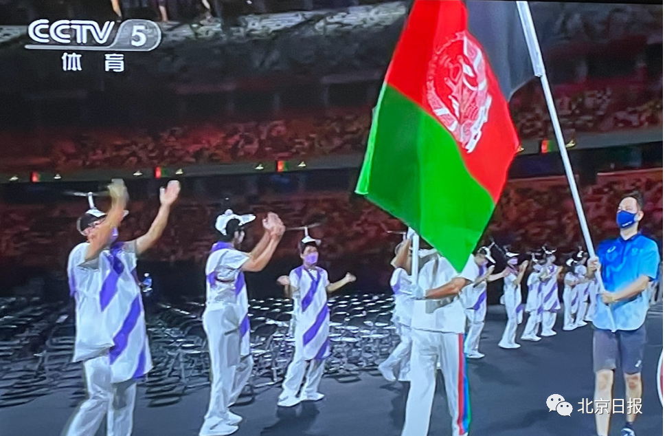 因阿富汗局势动荡,阿富汗未参加东京残奥会,开幕式上阿富汗代表团只有志愿者举着阿富汗国旗,没有运动员。