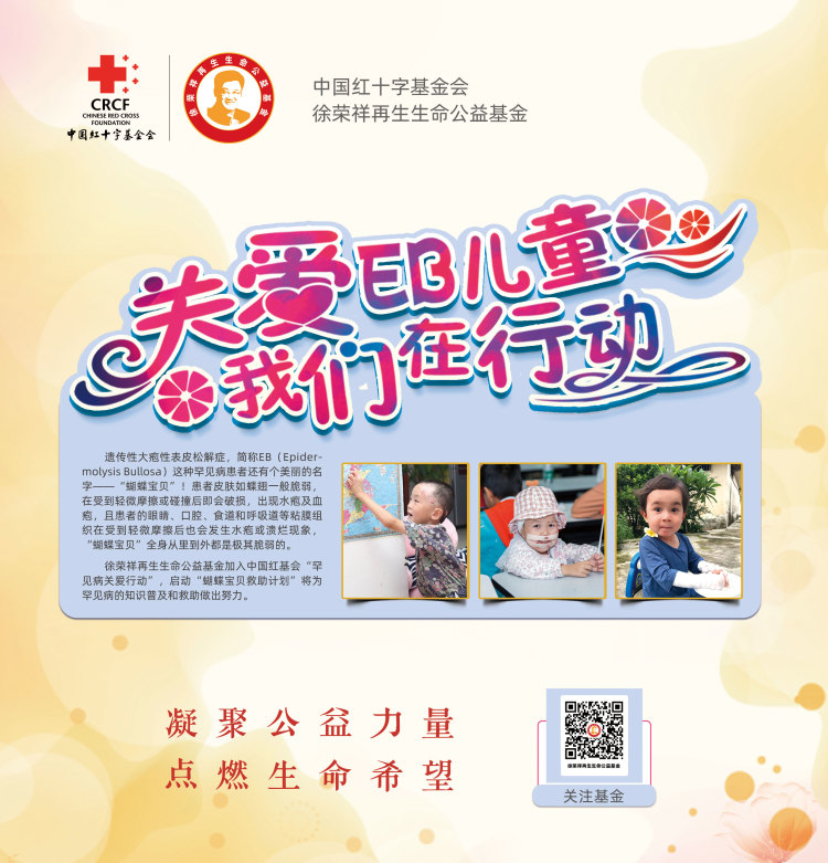 据悉,大疱性表皮松解症是我国《第一批罕见病目录》中的病种,这个罕见病人群,目前社会关注度低,身体容易生疱溃烂的他们,也无法正常上学和工作,甚至会被人误认为传染性疾病而疏离,身体和精神都饱受折磨。自2019年起,在这场漫长的守护“蝴蝶宝贝”的爱心旅途上,徐荣祥再生生命公益基金的脚步从未停歇。