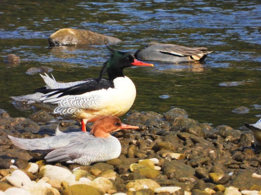 2022年1月19日开州区自然保护地管理中心工作人员与重庆观鸟会会长危骞一行对汉丰湖国家湿地公园开展了冬季候鸟联合调查,发现了国家一级保护鸟类中华秋沙鸭8只,国家二级保护鸟类鸳鸯12只,另外还发现斑背潜鸭、绿翅鸭等雁鸭类候鸟10余种。