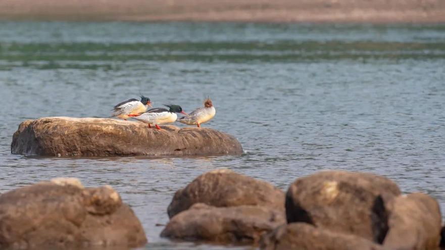 据了解中华秋沙鸭对生活环境要求极为苛刻,需要有优质的水环境、丰饶的觅食场所、茂密的水岸树林和安全的生存环境等,可以称得上是汉丰湖水质及周边生态环境好坏的重要“指示物种”,据悉,这也是在开州汉丰湖国家湿地公园第二次记录到此鸟种。中华秋沙鸭的出现离不开开州区对生态环境的大力保护。