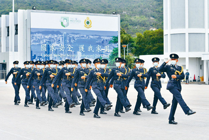 香港入境处仪仗队在展示中式步操。