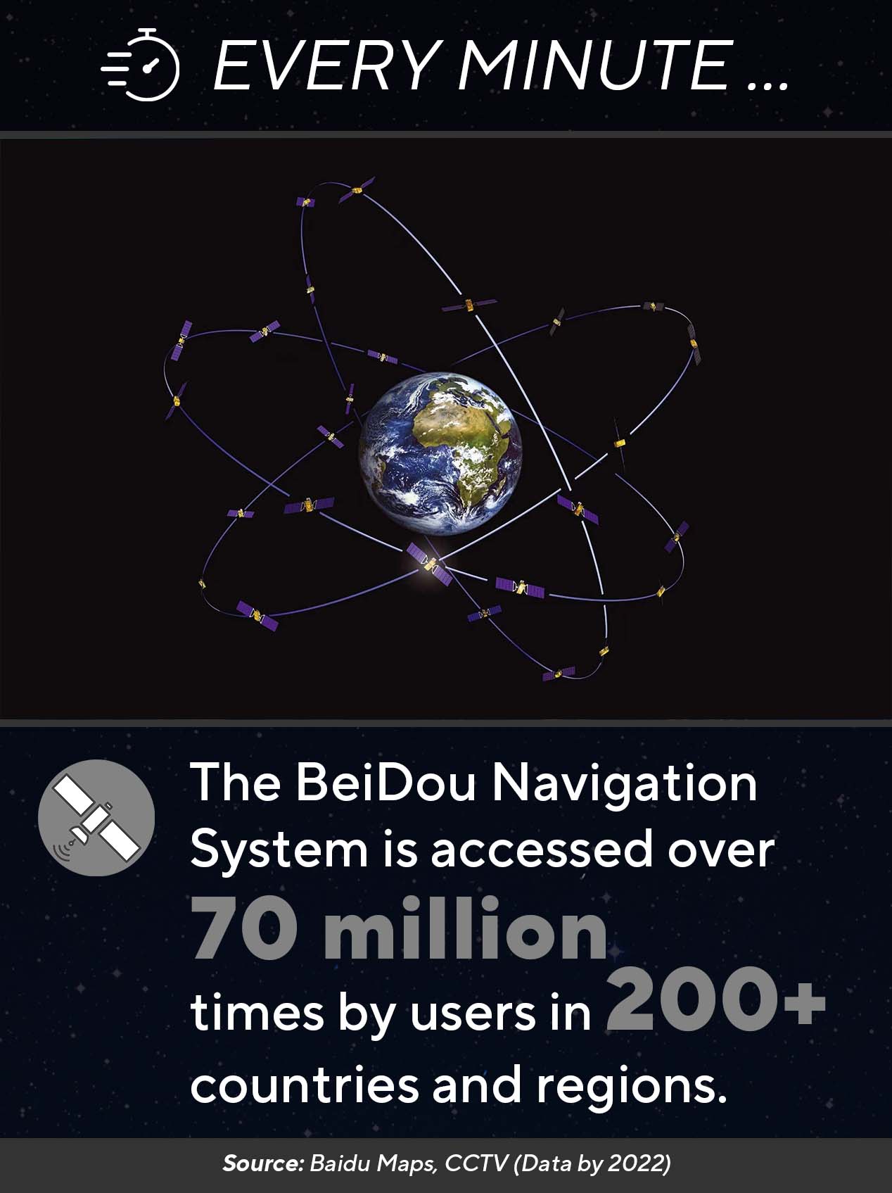 3. 每一分钟:北斗卫星导航系统被200多个国家和地区的用户访问超过7000万次