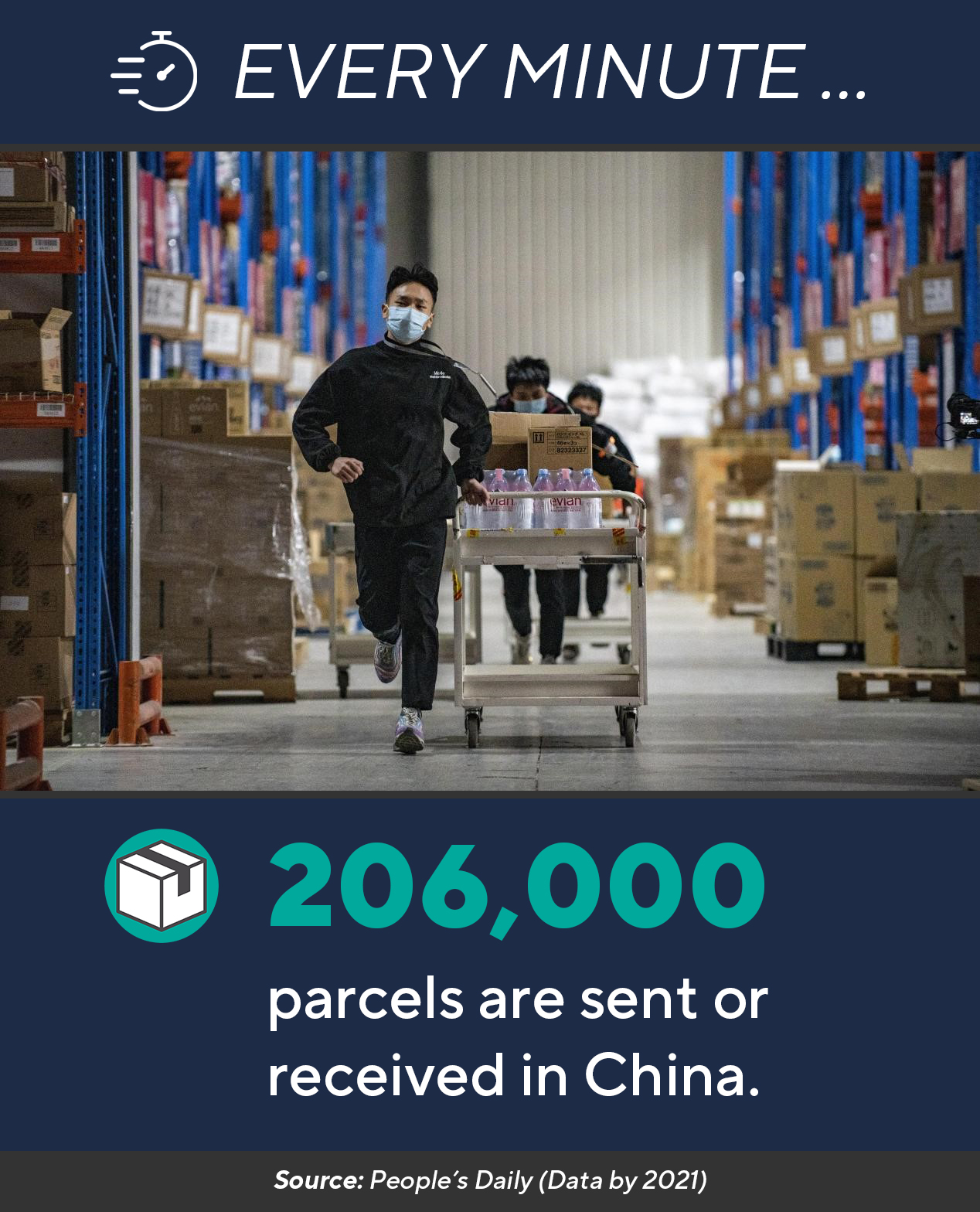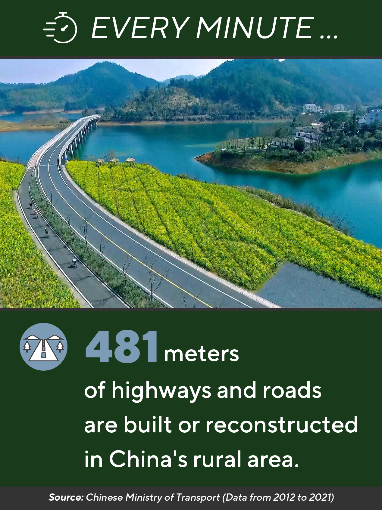 10. 每一分钟:中国农村地区新建或改建481米长的高速公路和道路