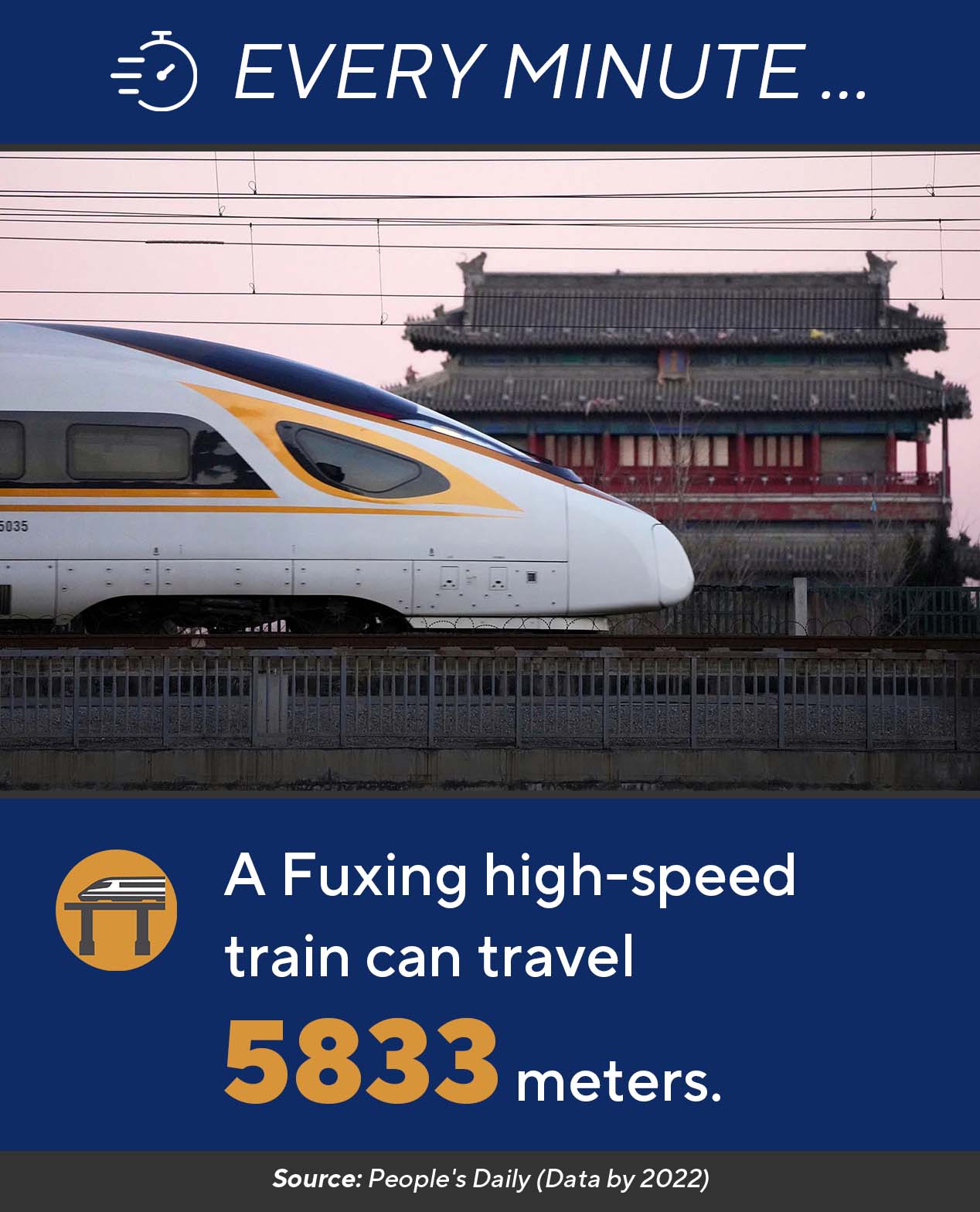 1. 每一分钟:“复兴号”动车可以行驶5833米