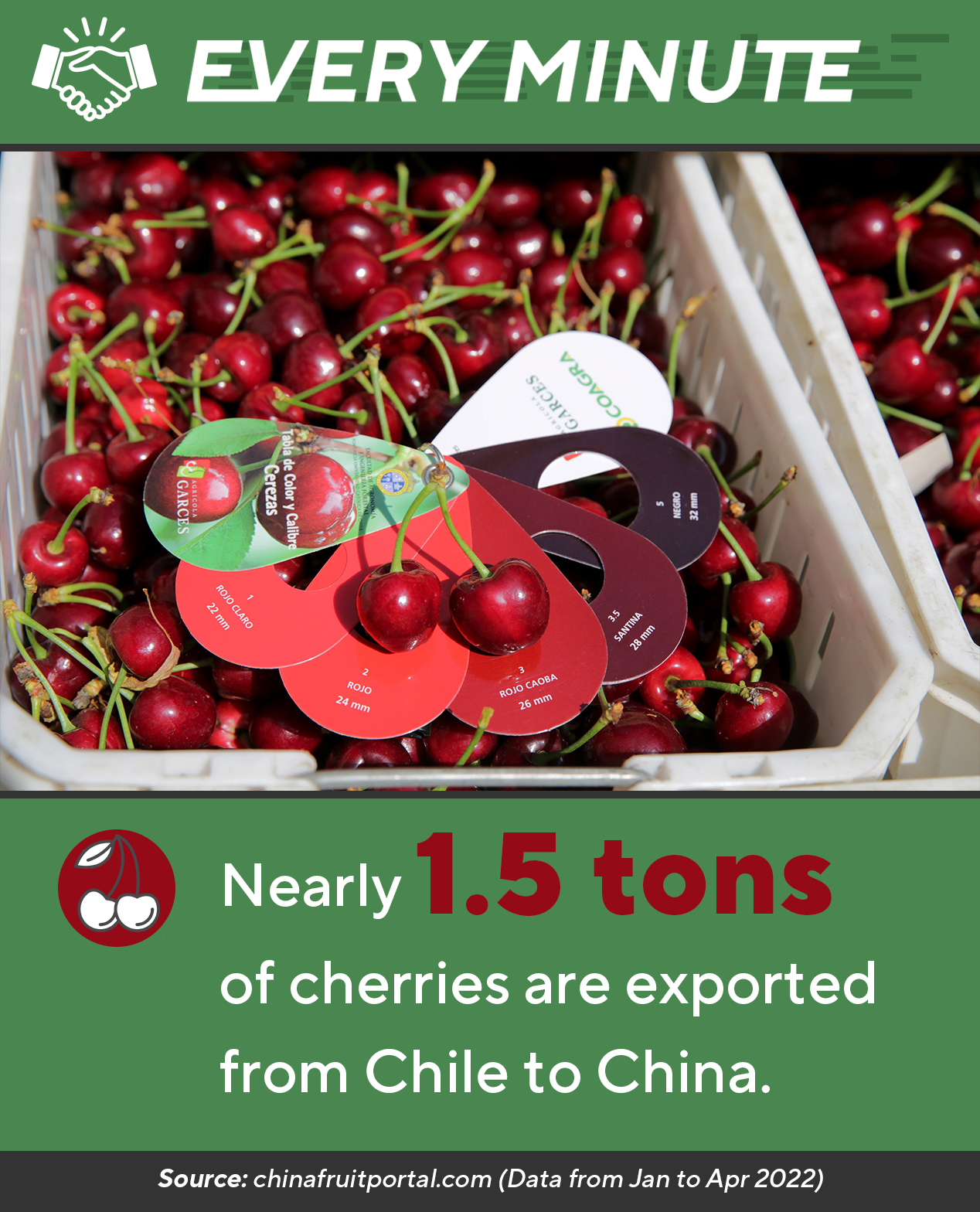 7. 每一分钟:近1.5吨樱桃从智利出口到中国