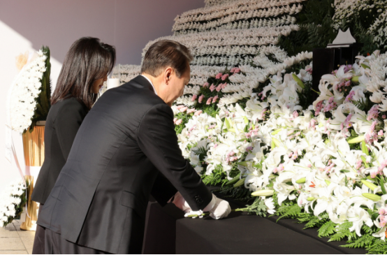据报道,当天,总统秘书室长金大棋、国家安保室室长金圣翰、警卫处长金龙显等韩国政府官员陪同尹锡悦夫妇进行了哀悼活动。