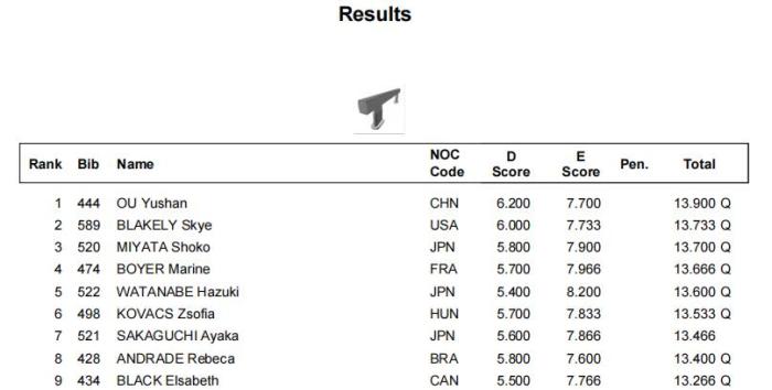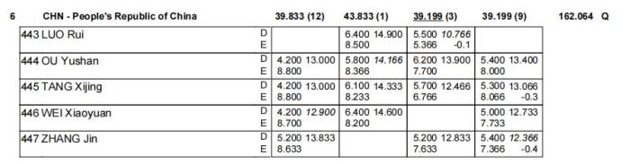 女团资格赛中,中国队在部分项目上出现失误,最终获得162.064分,以第六名身份晋级决赛。美国队、英国队和巴西队排名前三,意大利队、日本队、法国队和加拿大队也拿到了决赛入场券。