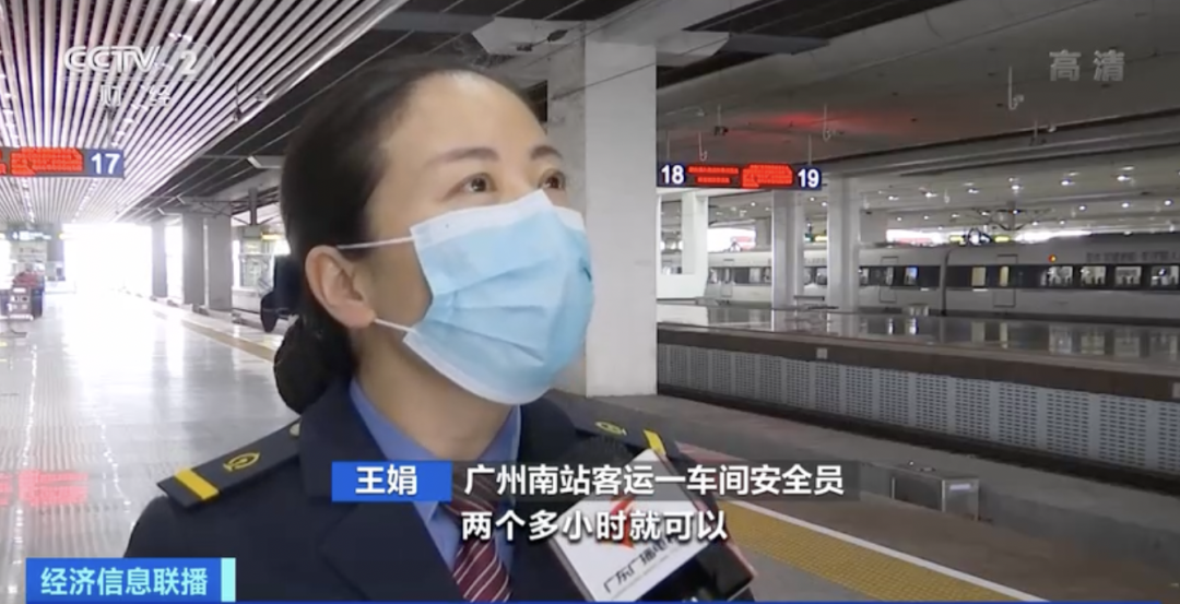 广州南站客运一车间安全员 王娟: 以广州地区发往长沙地区的快件为例,两个多小时就可以到达长沙南站,再通过当地物流接驳到达分发的地区。