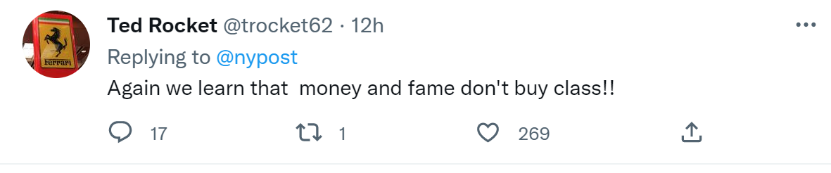 “这再次证明金钱和名誉买不到品味。”