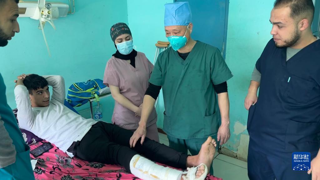 日前,记者在阿尔及利亚艾因迪夫拉省公立医院采访时看到,中国援阿医疗队骨科医生涂大椿刚做完一台手术。在与记者交谈时,他不时接听电话,用法语指导当地医护人员救治患者。