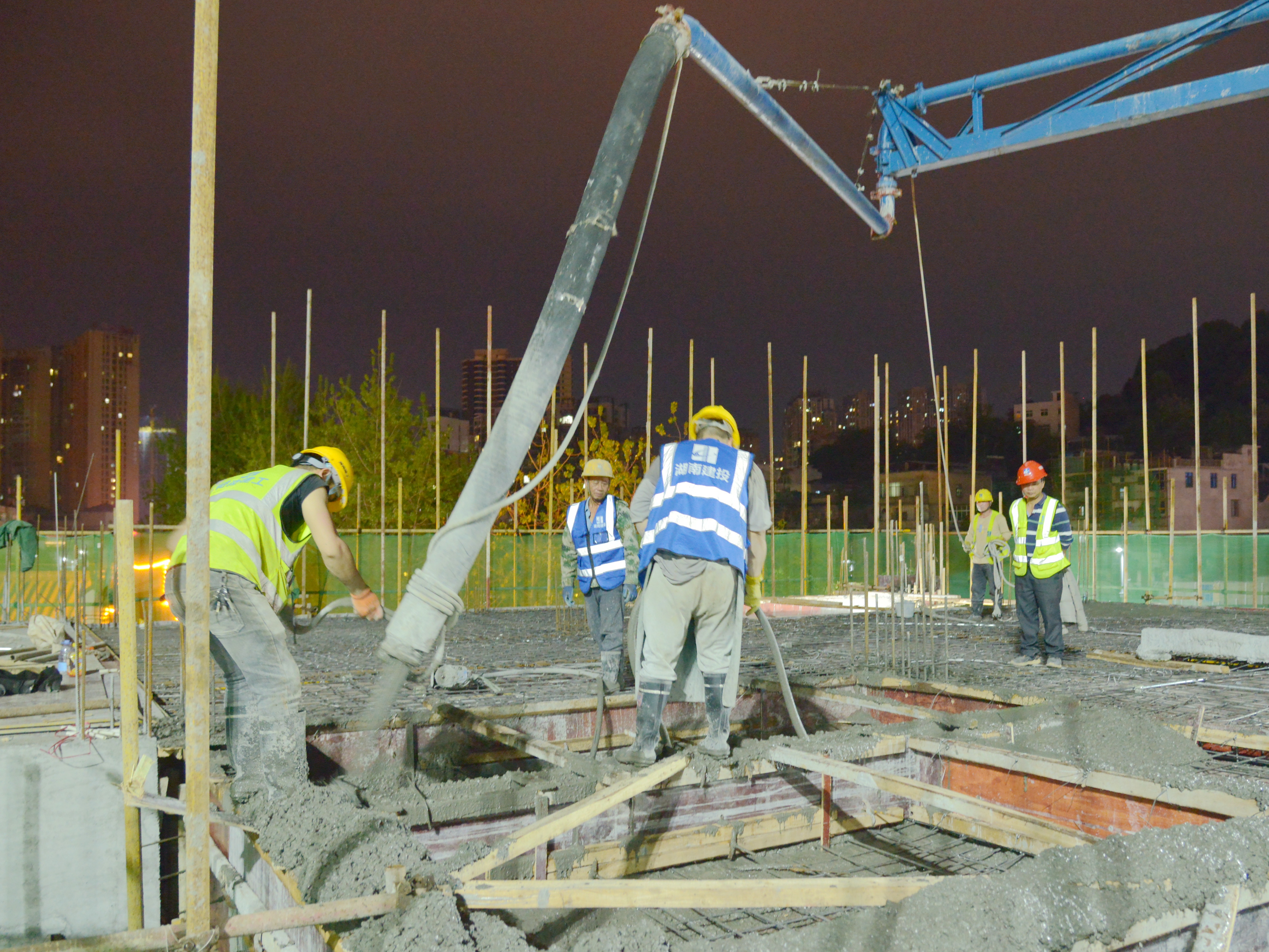 项目楼栋布局紧凑,内部结构复杂,材料堆放及运输通道场地受限,对施工工序衔接要求较高。为保证项目建设紧凑有序推进,项目近三百名建设者24小时轮班作业。