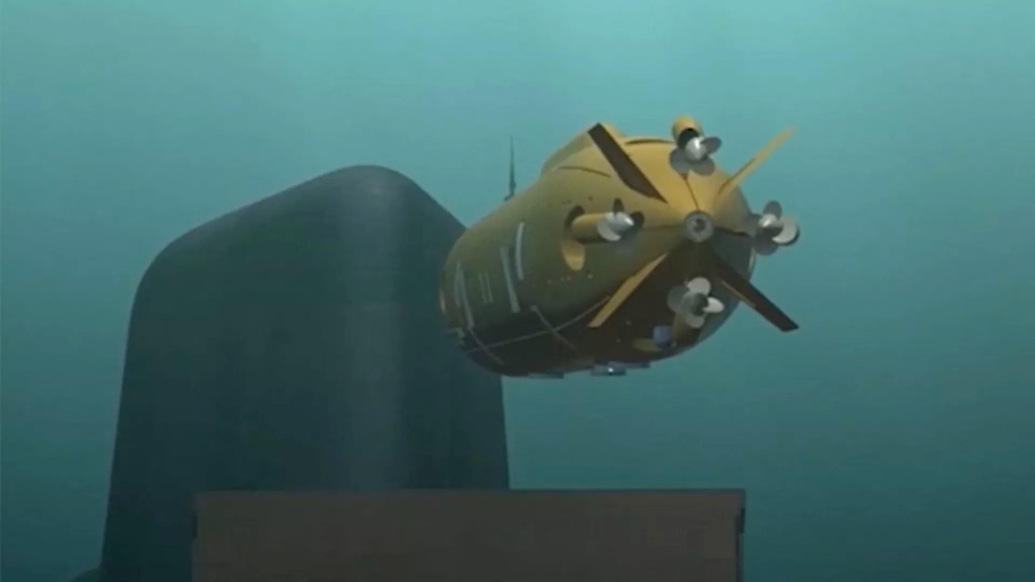 资料图:“波塞冬”核动力无人潜航器水下航行设想图,该潜航器可携带核弹头(来源:澎湃新闻)