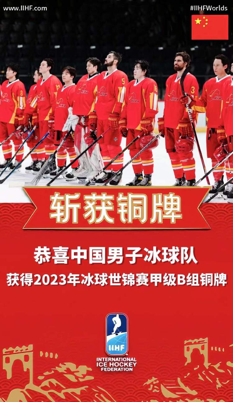 北京时间4月29日晚,2023年冰球世锦赛甲级B组的比赛在爱沙尼亚结束争夺,中国队以5∶2战胜东道主爱沙尼亚队,最终以3胜2负的战绩摘得铜牌。这是自2001年国际冰联施行全新的分级赛制以来,中国男子冰球队在世锦赛上取得的最好成绩。