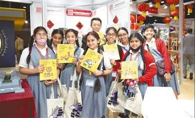 阿布扎比国际书展期间,当地学生对北京语言大学出版社出版的《轻松学中文》少儿版颇感兴趣。