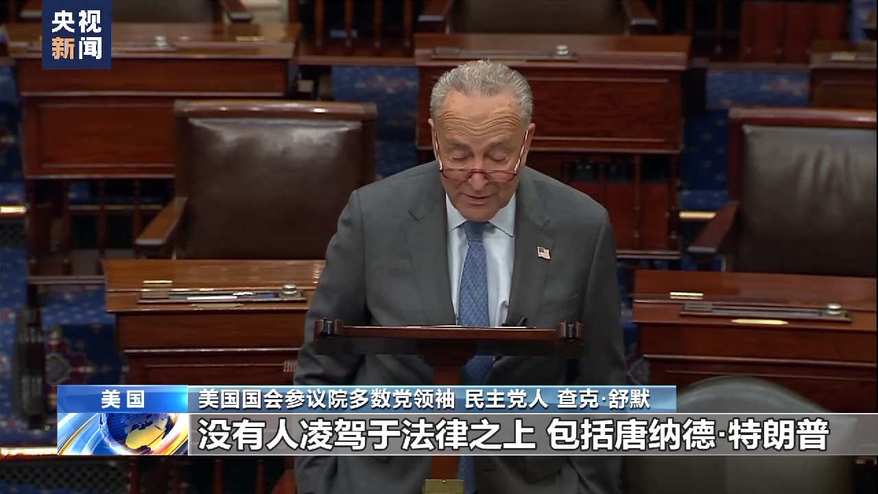 美国国会参议院多数党领袖 民主党人 查克·舒默:没有人凌驾于法律之上,包括唐纳德·特朗普。