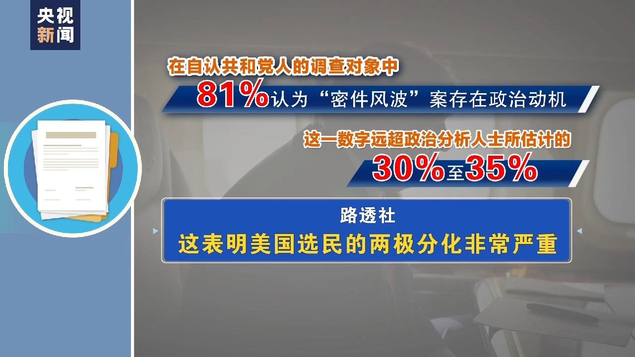根据路透社与益普索集团12日公布的最新民调结果,在自认共和党人的调查对象中,81%认为“密件风波”案存在政治动机,这一数字远超政治分析人士所估计的30%至35%。路透社直言,这表明美国选民的两极分化非常严重。