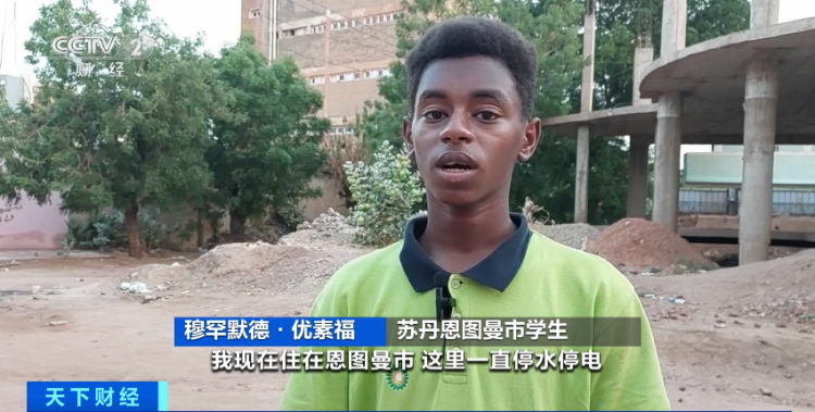 苏丹恩图曼市学生 穆罕默德·优素福 :我现在住在恩图曼市,这里一直停水停电。医疗卫生条件也很艰苦,大多数病人得不到救治。很多药店都被洗劫一空,这里所有医院和学校也都关闭了。