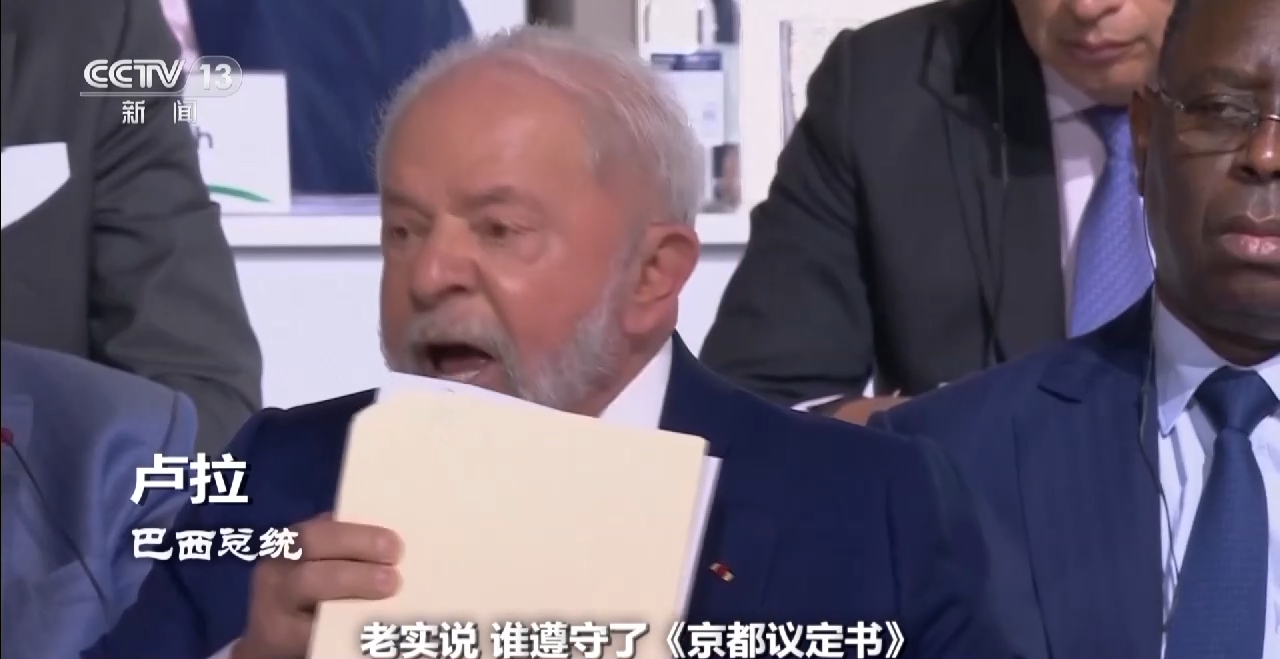巴西总统 卢拉:老实说,谁遵守了《京都议定书》?谁遵守了在哥本哈根举行的第15次缔约方会议的决定?谁履行了《巴黎协定》?也就是说,《巴黎协定》没有真正落实,因为没有强有力的全球治理来作出决策和真正执行。