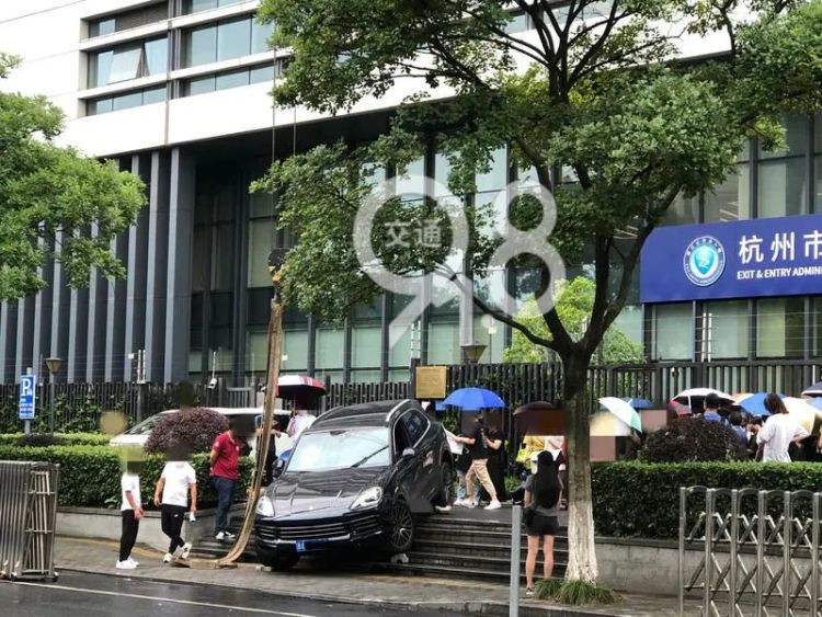 今天(6月26日)13:24,有网友爆料,杭州市公安局出入境接待大厅门口,有一辆保时捷卡在楼梯上了!