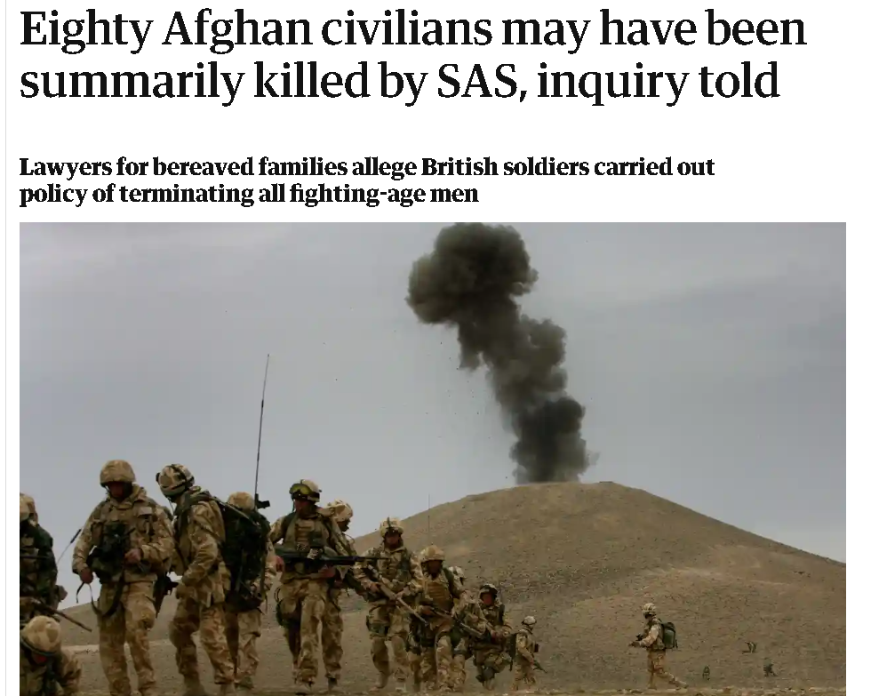 近日,英国《卫报》爆料称,在2010年到2013年间,有多达80名的无辜阿富汗平民,遭到了英国特种部队特种空勤团(SAS)残忍杀害。目前这些被害人的家属已经通过律师在英国提起了诉讼,要求公开调查此事。