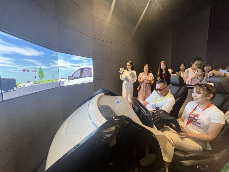 在这里,蒙古国记者对智控中心内超大显示屏展示的超200公里智能网联道路测试示范区实时监控画面非常感兴趣,不停向中心的工作人员询问道路测试示范区内无人驾驶车辆的相关细节。此外,智控中心内互动性虚拟驾驶展品也深受蒙古国记者欢迎,纷纷上前试乘试驾。