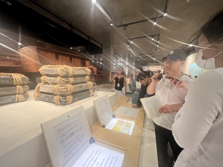 苏州御窑金砖博物馆,生动再现了御窑金砖从阳澄湖畔的地域性物质原料—黄泥粘土到王朝最高殿堂的历炼过程,成为专为皇室御用的“天下第一砖”,其原始的制作技艺和超长制作周期使中蒙记者对这项国家级非物质文化遗产颇为惊叹。