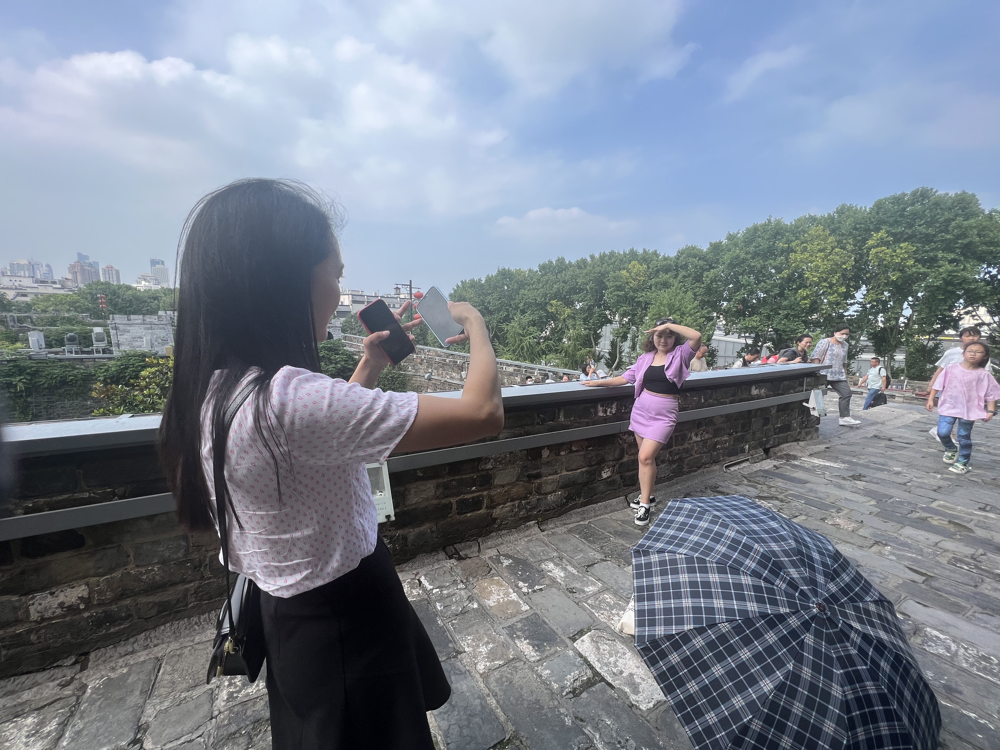 在六朝古都的古城墙之上,蒙古国记者纷纷驻足留念,感受南京明代古城垣的宏伟沧桑,追溯古代军事建筑之奥秘。