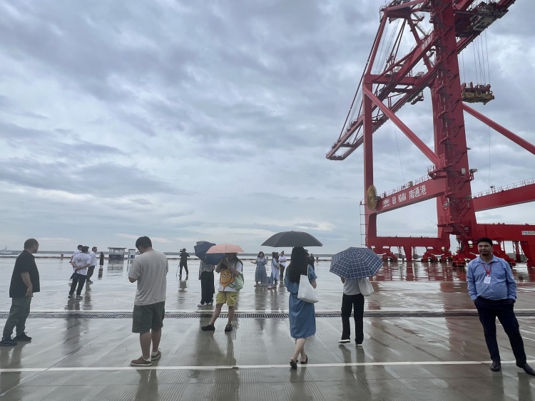 斜风细雨中的海港集装箱码头,一排排集装箱和远控桥吊深深震撼了来自内陆国家蒙古国的记者。钢其木格说,因为蒙古国没有海港,因此港口对蒙古国民众来说非常新奇。港口运营是体现江苏省实力的关键因素,并产生了经济效益,给她留下了深刻的印象。
