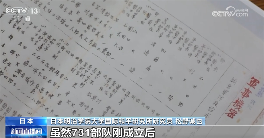 日本明治学院大学国际和平研究所研究员 松野诚也: 这份资料再次证明731部队确实存在,很多大学医学部研究者参与其中,利用医学大量制造杀戮兵器,从这份改编的职员表中可以分析出很多问题。