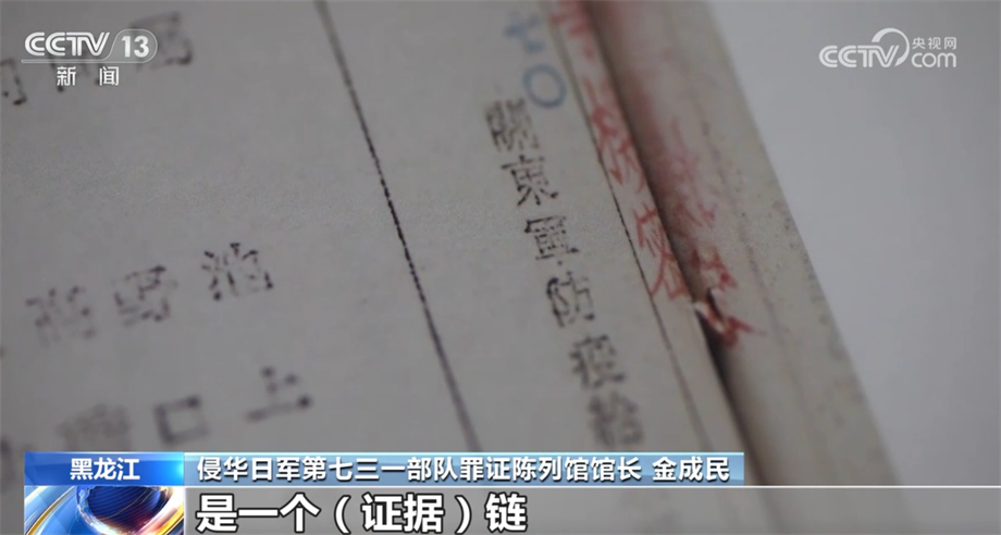 侵华日军第七三一部队罪证陈列馆馆长 金成民: 这批档案资料的发现十分重要,是731部队产生、发展过程当中最关键的一个环节,这是731部队真正膨胀的开始。它们能够从头到尾真正把731部队从无到有、从小到大到关键发展、到恶性膨胀、到最后灭亡的这样的全过程给大家一个交代,是一个(证据)链,是完整的。