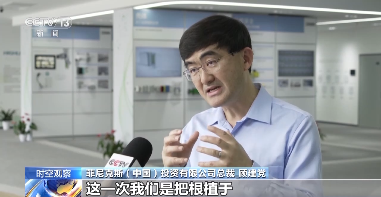 菲尼克斯(中国)投资有限公司总裁 顾建党:这一次我们是把根植于德国的所有核心零部件的生产技术全部转移到中国来,将会打造成为一个全价值链的超级工厂。