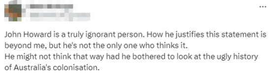 有人批评:“典型的约翰·霍华德——傲慢、种族主义、藐视真实历史。”