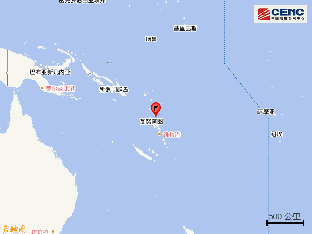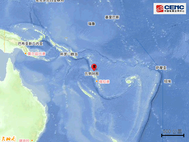 据中国地震台网正式测定,北京时间7月26日20时44分(当地时间7月26日23时44分)在瓦努阿图群岛发生6.4级地震,震源深度10公里,震中位于南纬14.70度,东经167.85度。