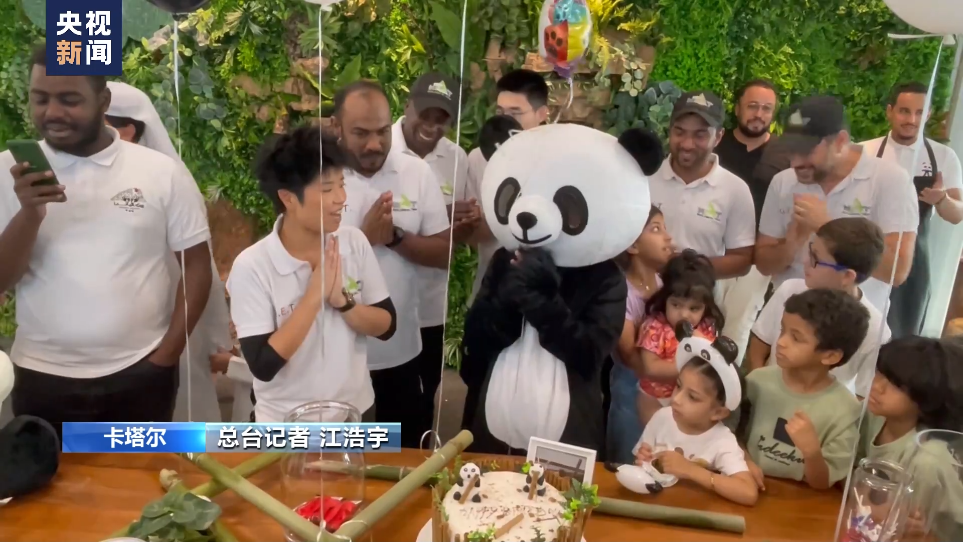 总台记者 江浩宇:去年世界杯前夕,两只中国大熊猫来到卡塔尔,并很快成了这里的人气王,到现在已经有超过11万游客到这里来探望他们。在四海温馨的生日会上,我们都能感受到中东人对大熊猫的热情和喜爱。