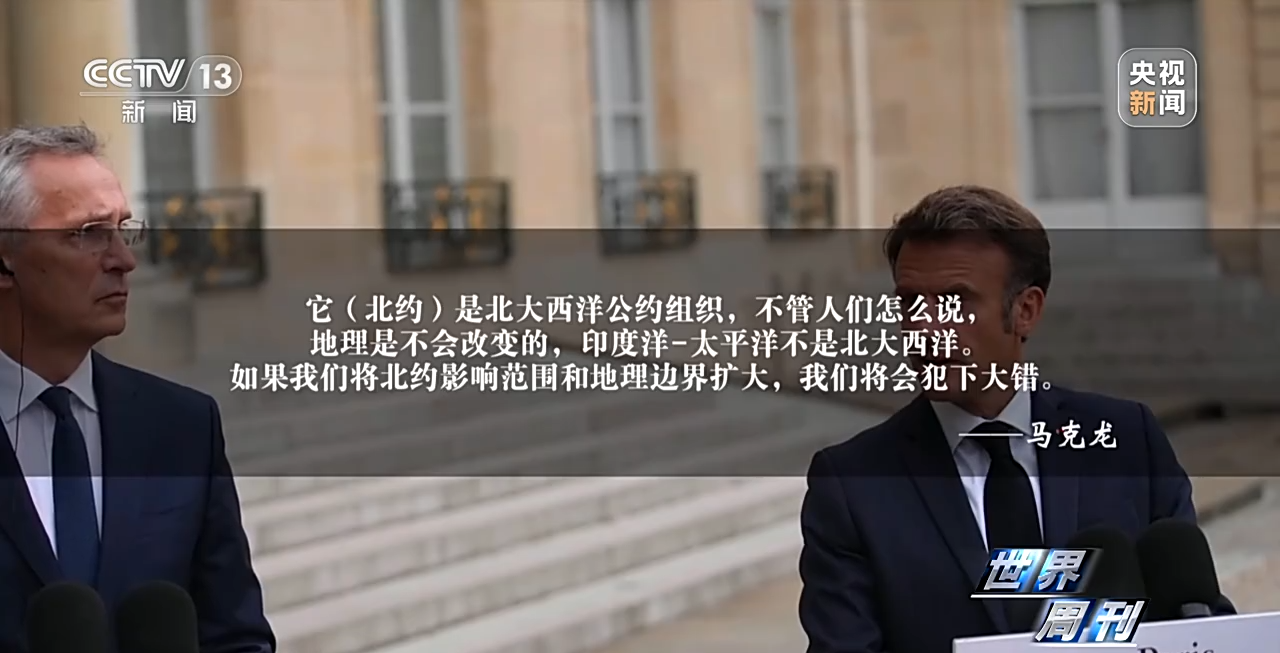 “它(北约)是北大西洋公约组织,不管人们怎么说,地理是不会改变的,印度洋-太平洋不是北大西洋。如果我们将北约影响范围和地理边界扩大,我们将会犯下大错。”——马克龙