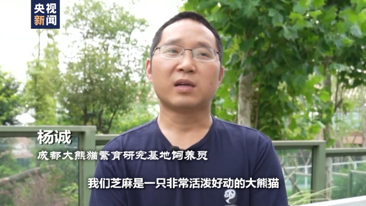 成都大熊猫繁育研究基地饲养员 杨诚:我们芝麻是一只非常活泼好动的大熊猫,平时就到处做运动,举高,爬树,无所不能。现在它是吃嘛嘛香,活动量很大,采食量也很好,身体状况也十分健康,体重已经130公斤了。