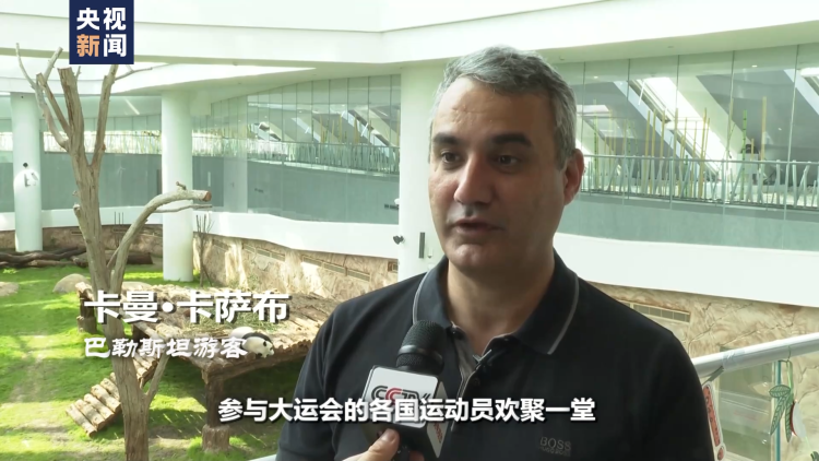 巴勒斯坦游客 卡曼·卡萨布:参与大运会的各国运动员欢聚一堂。运动能增强凝聚力,如果在成都看到熊猫,肯定会让大家关系更亲近,也会拥有更多美好回忆。