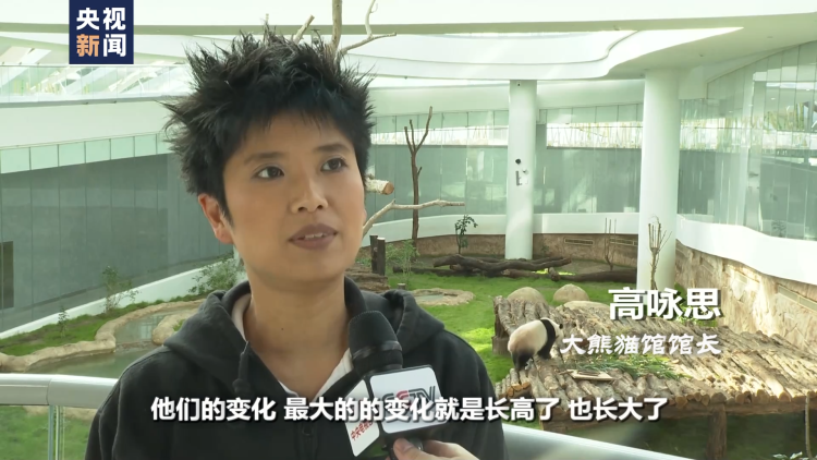 大熊猫馆馆长 高咏思:他们的变化,最大的变化就是长高了,也长大了。四海刚来的时候大概75公斤,现在已经100公斤。京京(刚来的时候) 125公斤,现在150公斤了。这边的游客,还有卡塔尔人都特别喜欢熊猫。(动物园客流量)一天最高大概有3000人。